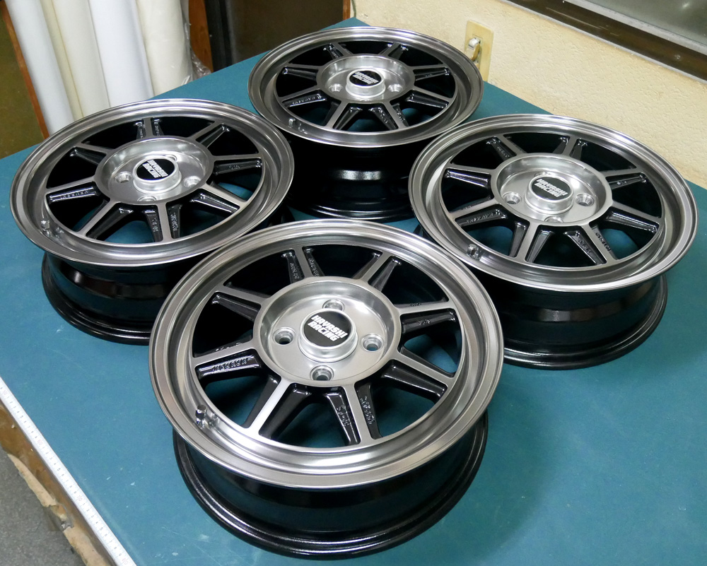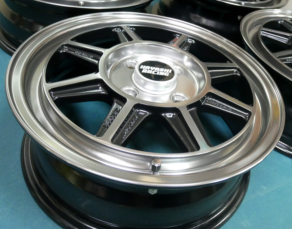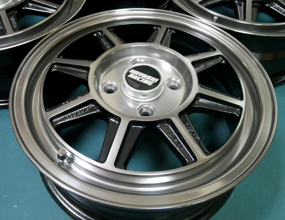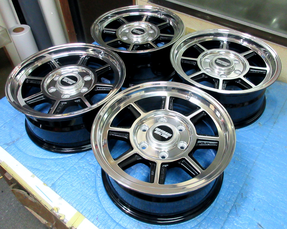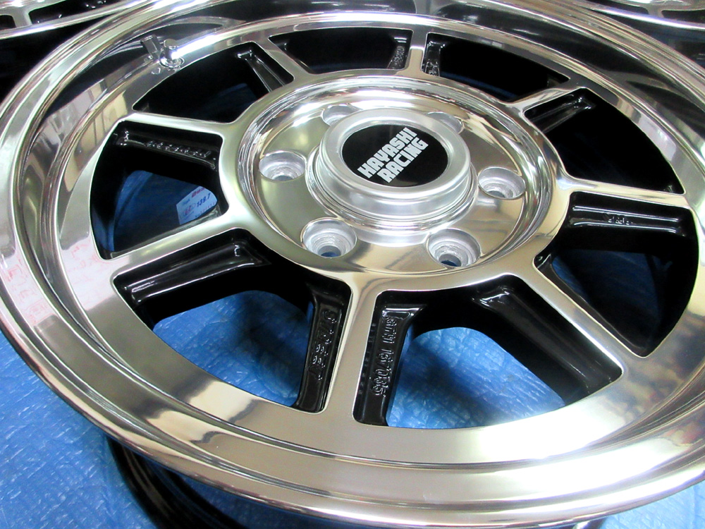 ハヤシレーシング14&16インチ/パウダーグロスブラックバレル研磨オンクリアー&ノークリアーx2台