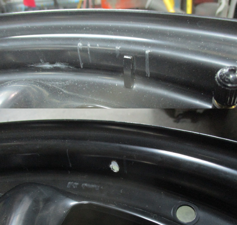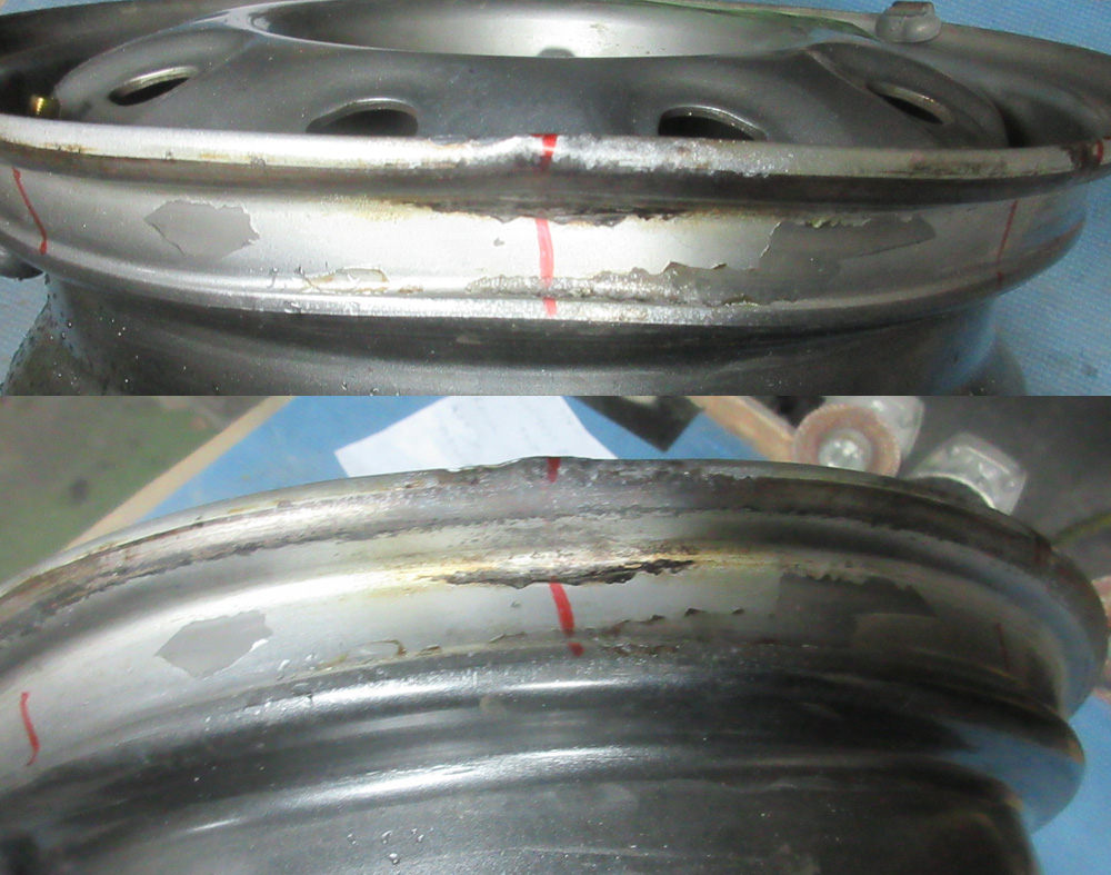 佐賀県のお客様・・・曲りを応急処置で治した鉄ホイール