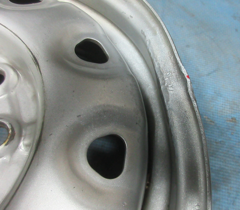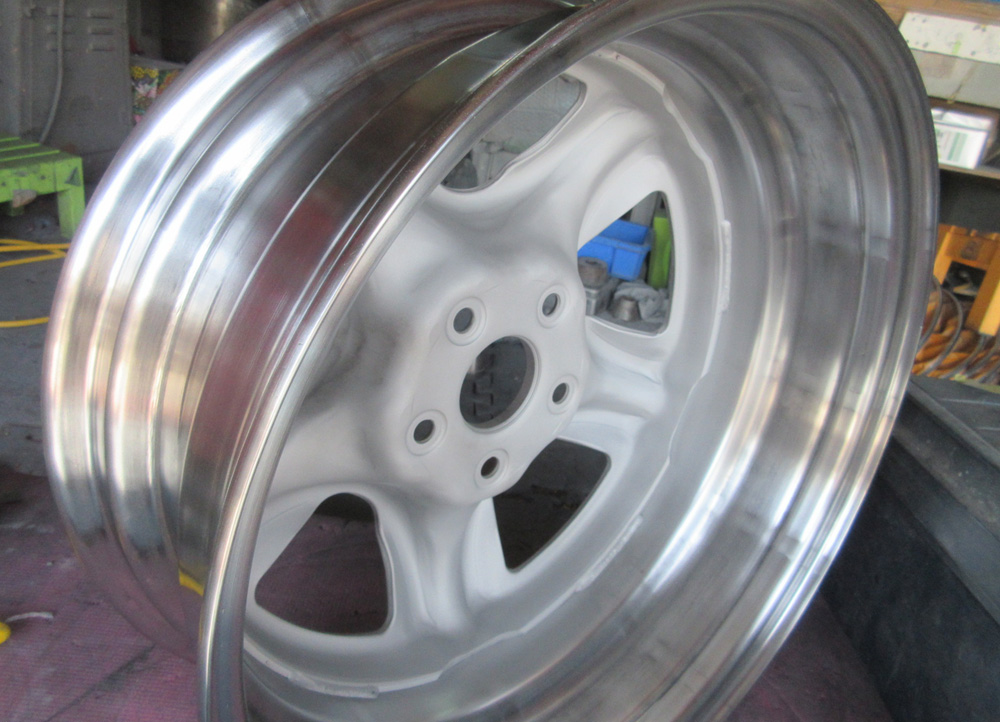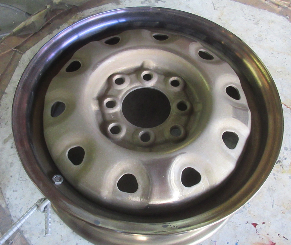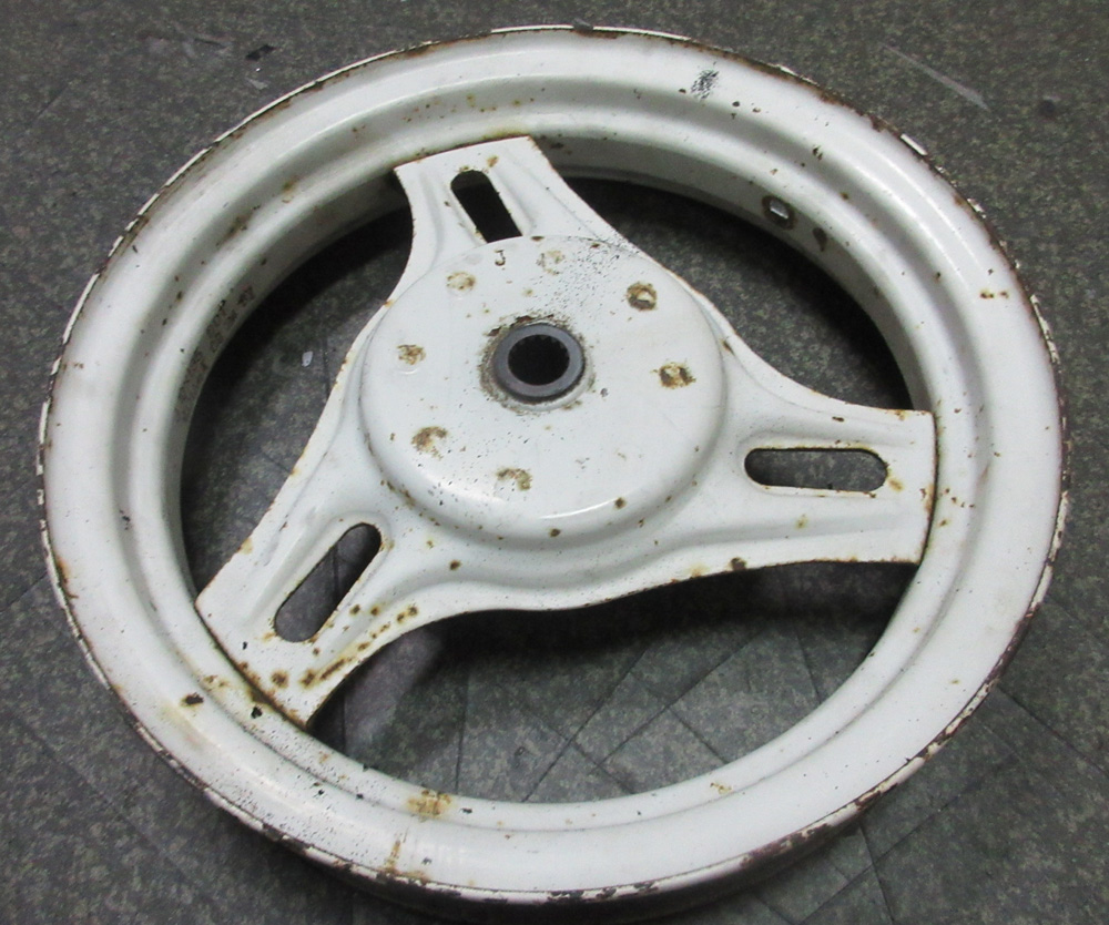 30年前の鉄ホイールですので凸凹曲がってかなり傷んでいますが修理と下処理さえしっかりすれな見事に再生蘇ります。