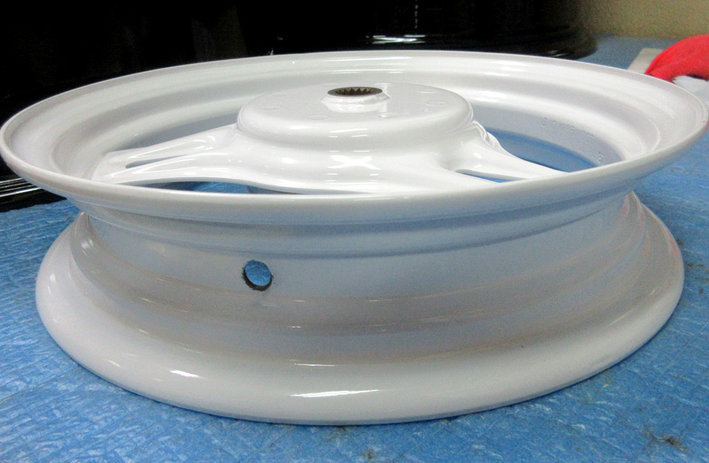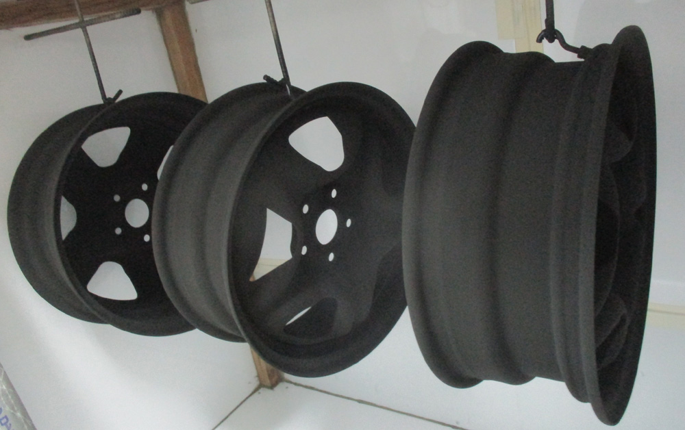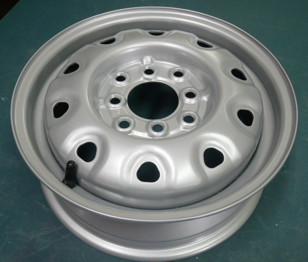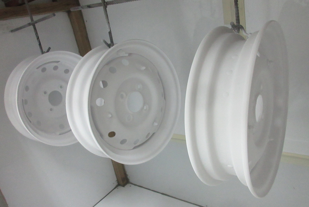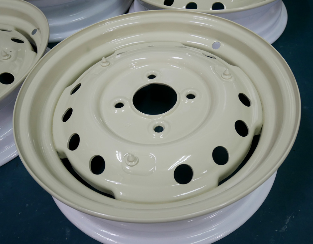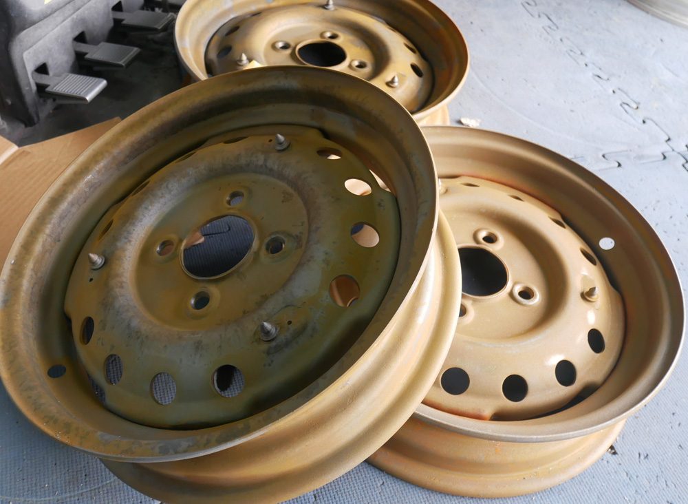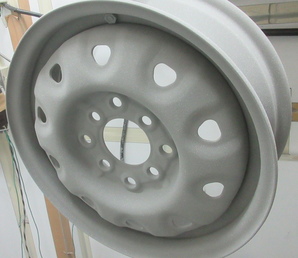 鉄ホイールの修理から再塗装リフレッシュ・リメークは当社では全て粉体塗装(パウダーコート)での再塗装を行っています。