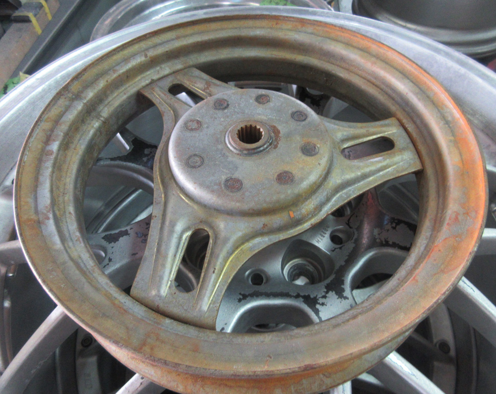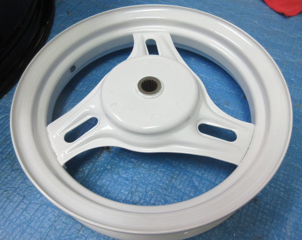 二輪・四輪鉄ホイールの修理パウダーコート再塗装です。