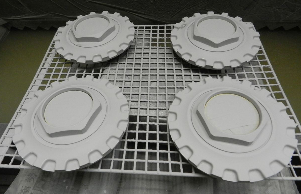 プラ樹脂製キャップはパウダーコートが出来ませんので再塗装前の溶剤サフ