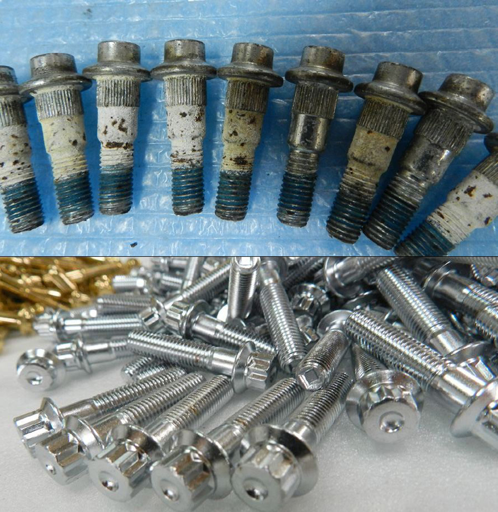 RCのピアスボルトは丸頭のスプライン圧入式で外す際は損傷無く外せますが装着時は圧入によりピアスボルトの丸頭が一部潰れクレーム回避のためピアスボルト交換は必須条件とさせて頂きます。