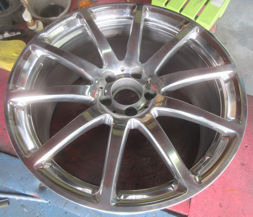 福島県のお客様・・・程度良好なベンツ純正19インチ鋳造(CAST)のダイヤモンドカットからバレル3次元研磨パウダークリアーに模様替え