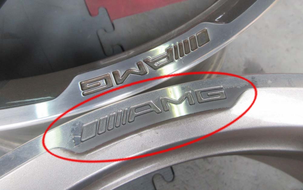 ベンツ純正ダイヤモンドカットのガリ傷修理ついでにブラッシュド模様替え