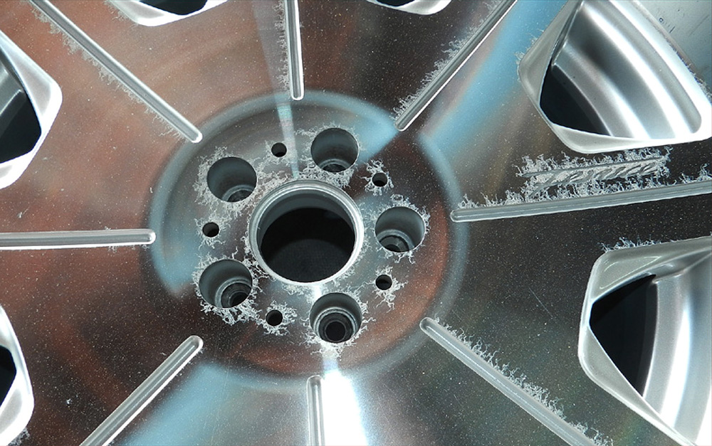 9・ディスクのエッジが鋭角になり溶剤クリアーが伸びてクリアーが薄くなるため角部から水侵入により白ミミズシミが早期に入る