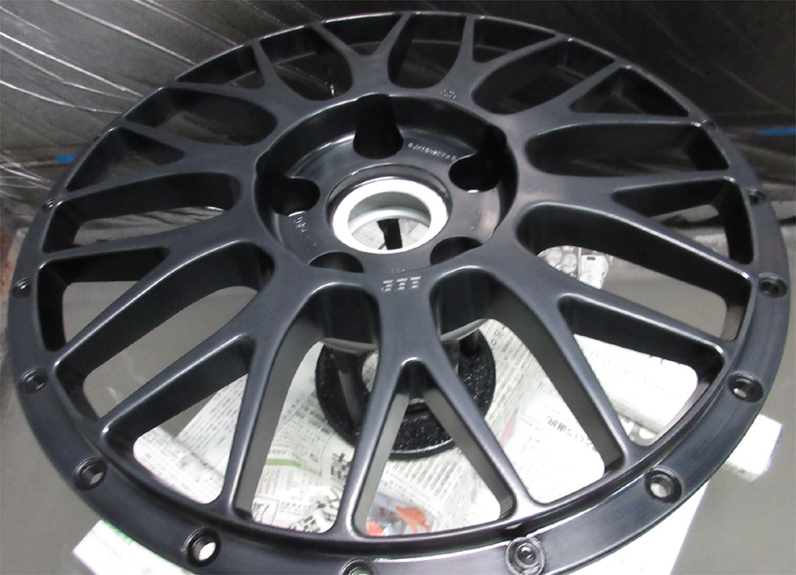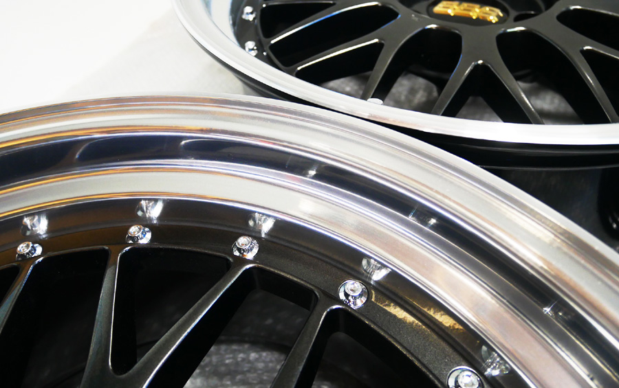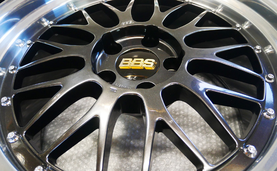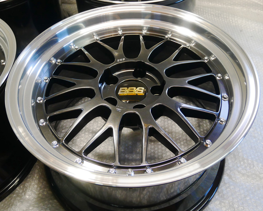 BBS-LM18インチ溶剤GP(ゴールドポリッシュ)から溶剤ハイパー塗装DBK-P(DB-SLD)黒濃目リムポリッシュフルパウダーコート