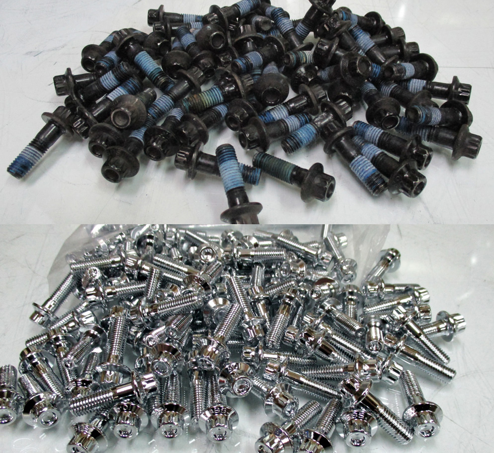 黒のピアスボルトはクロームメッキして錆びて傷んだナットはパウダーシルバーにします。