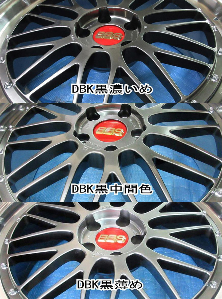 DBK黒濃淡はリクエスト無い限り通常の黒中間色になりますが、DBKは黒ベースからハイパー銀膜透かし具合で黒濃淡調整(黒濃目・黒中間色・黒薄目)が可能ですのでお好みに応じて対応可能です。