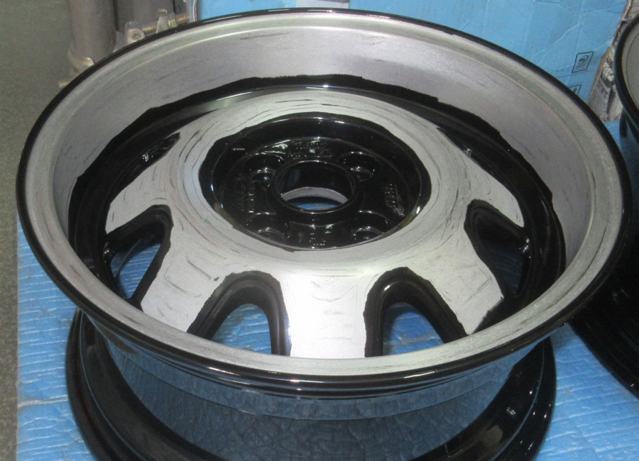 奥の溝の箇所は研摩傷が入らない様にマスキングしてハンドアクション研磨からリム研摩