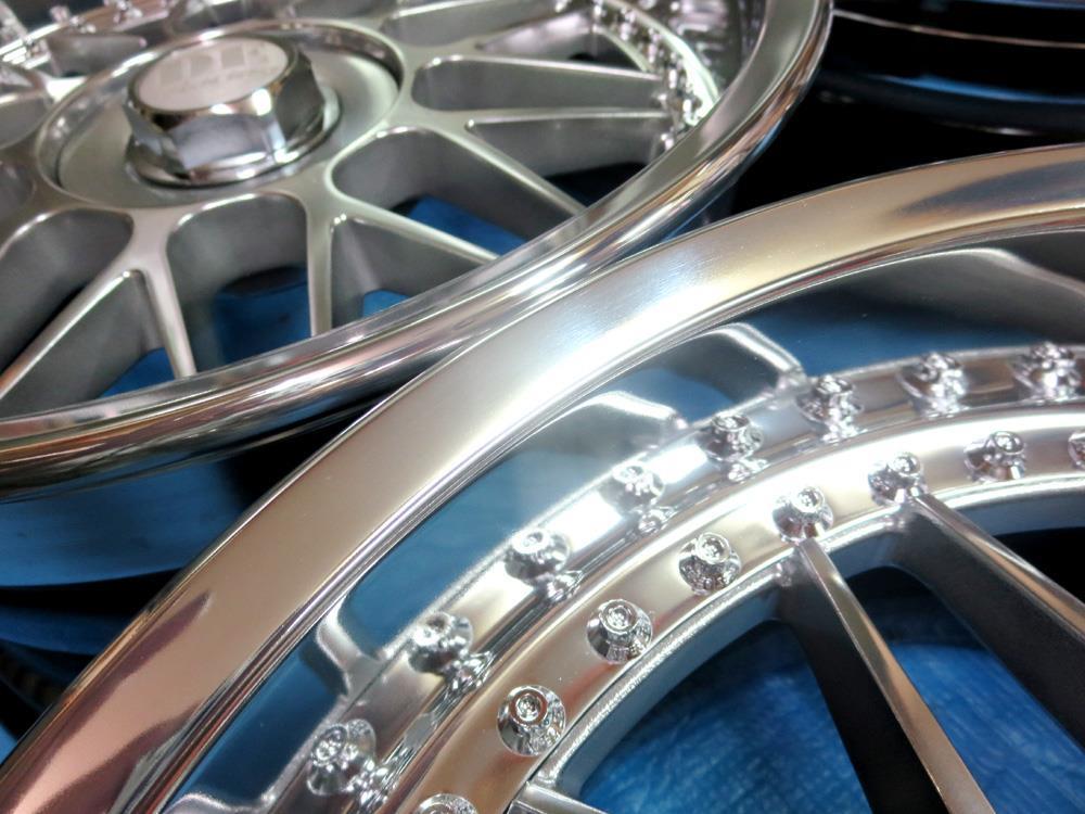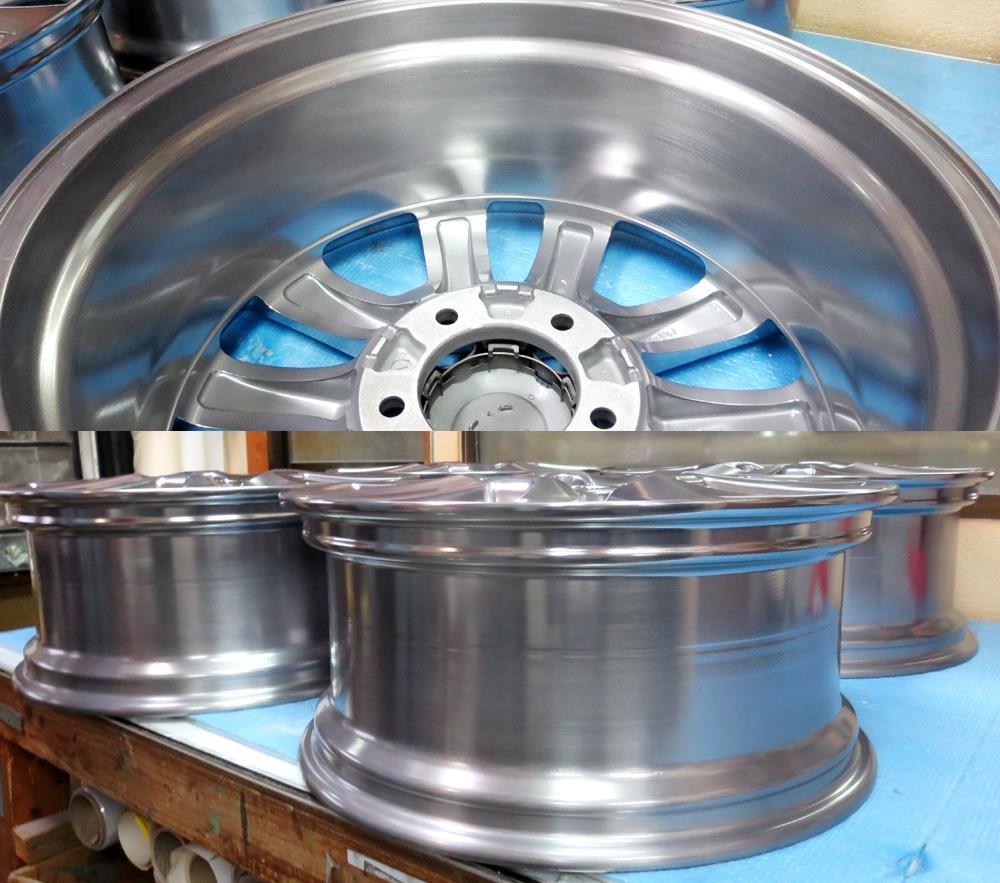 毎日施工しているカスタムのバレル研摩したホイールや新品設定のバレル研磨フルポリッシュなどの曲りやガリ傷修理からの仕上げ研磨は普通のバフ磨きでは無くバレル研磨工法のため単品修理の依頼が特に多く入荷してます。