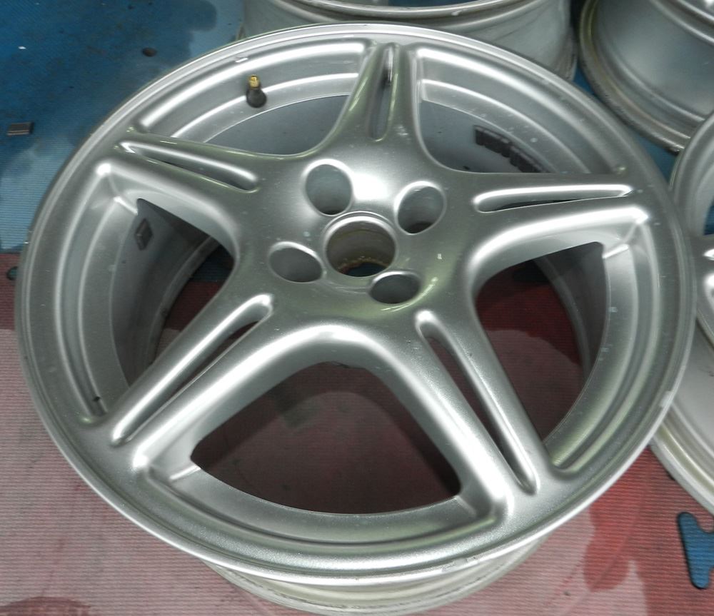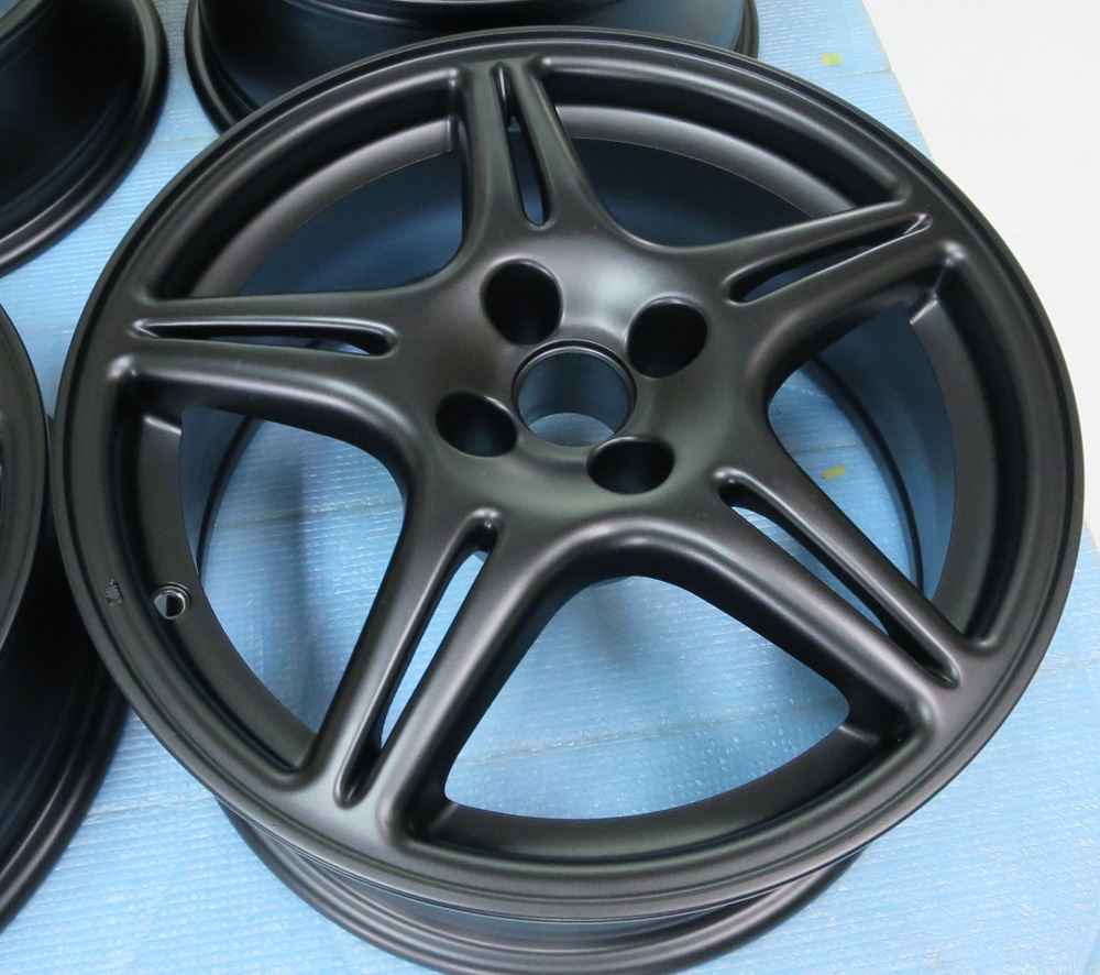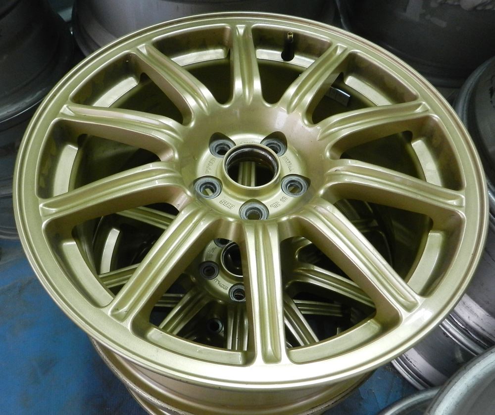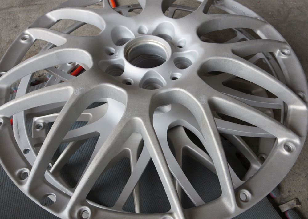 ①曲り、ガリ傷修理~ ②塗装剥離~ ③ブラスト研磨(ドライ&ウェット)~ ④ディスク部はアクションハンド研磨~ ⑤リム研磨(アウト、インナー、側面リム)~ ⑥丸ごとバレル荒研磨~ ⑦完全脱脂~ ⑧120℃空炊き~ ⑨静電パウダー噴射~ ⑩冷却完成!