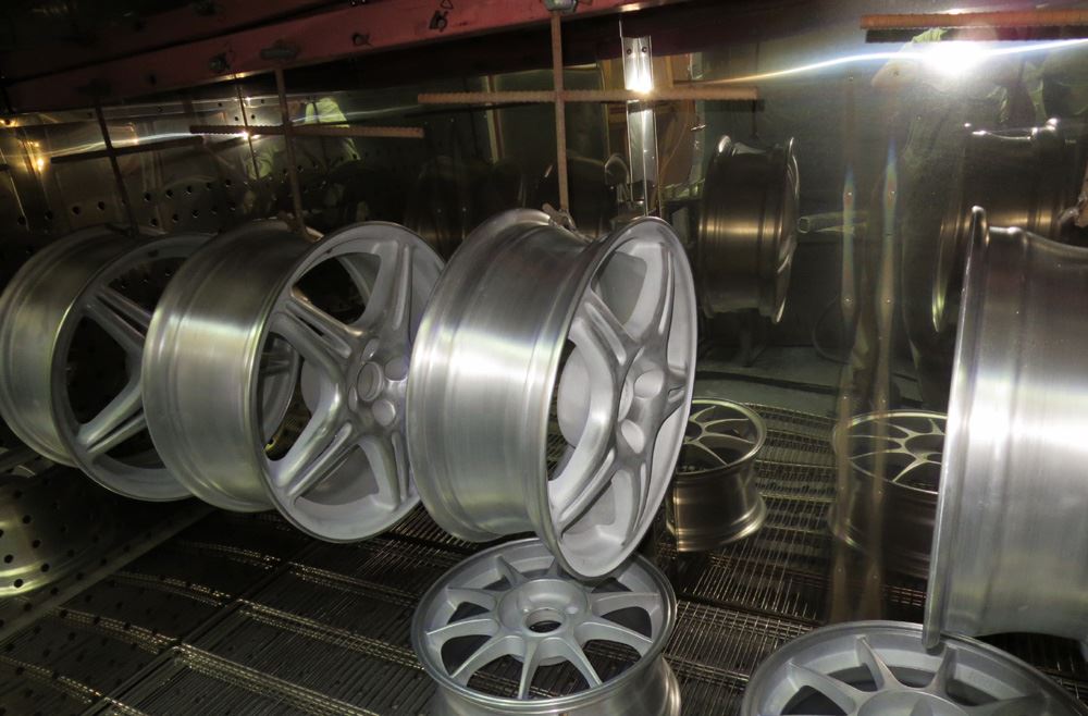 リムとは別工程でディスクの剥離からブラスト研磨を掛けます。
