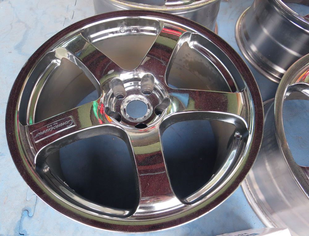 香川県のお客様・・・僅かなリム傷やメッキ剥げでもスパッタリングメッキ修理は高額になりさらに納期も不安定で1本の修理でも1~2ヶ月かかりす。次回からの修理コストも考慮して別加工バレル研磨に変更リフレッシュします。
