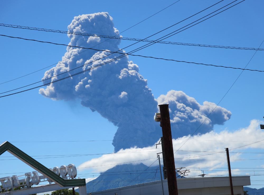今日の夜中は台風が県本土に上陸して朝4時頃から起こされて台風通過後は久しぶりに快晴となりました。・・が・・いつものように目の前の桜島が相変わらず活発な噴火をしています。灰の影響で少なからず仕事に影響しますので思ったように事が進みません。