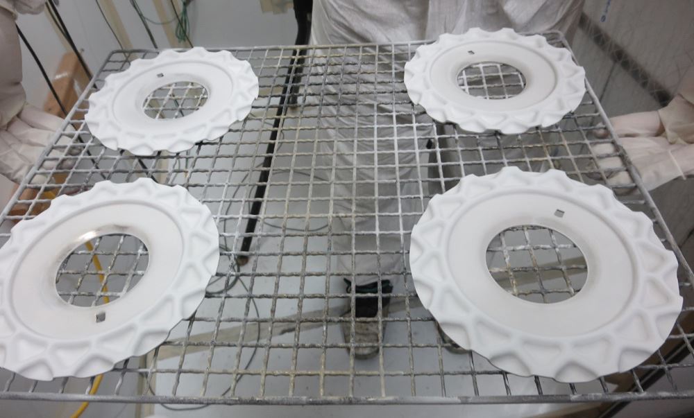 センターディスク&メッシュプレート2コート目パウダークリアー静電噴射!