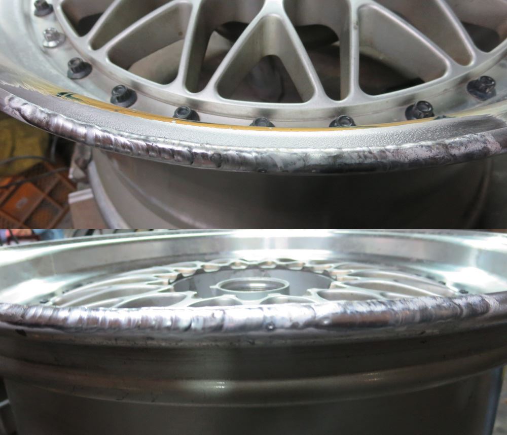一部削り込んだ箇所はリムの高さを復元するため肉盛り溶接しますがリムサイド面まで削り込んで有りましたので天面からサイド面まで包み込むように肉盛り溶接