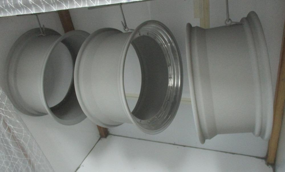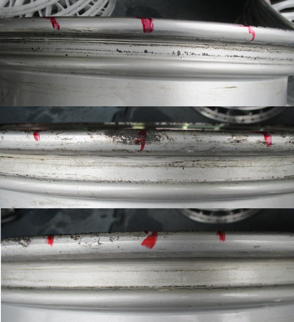 ※裏リムはメンテ掃除が出来ない箇所のため腐食の進行も早くなり腐食が酷いモノが多く有ります。そんなインリムへパウダーコートすれば高温焼きにより腐食部からブツ、湧きが出てしまいます。でも・・そこは裏面インリムですので溶剤塗装でビジュアル見た目重視するより耐久性の観点から多少のブツは有り、犠牲としてもインリムにはパウダーワンコートフィニッシュが良いかと思います。ガラスコーティングなども必要ないです。