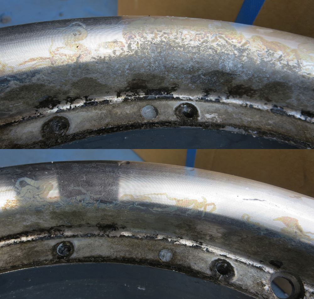 ガリ傷肉盛り溶接!リム腐食は現時点ではどうなるモノか不安です。
