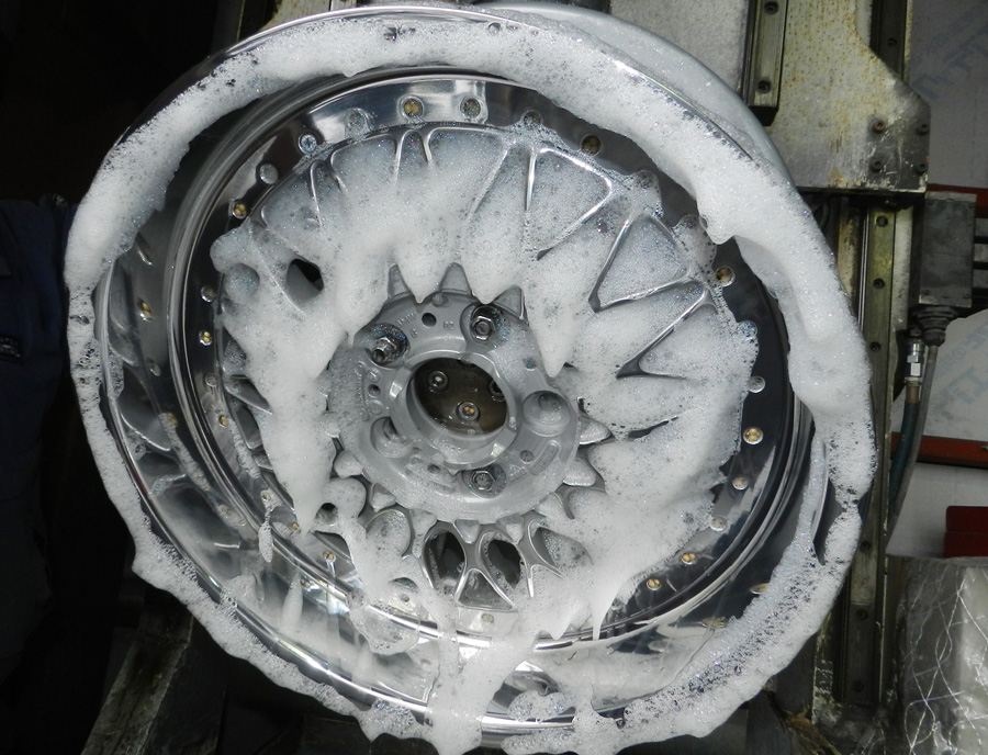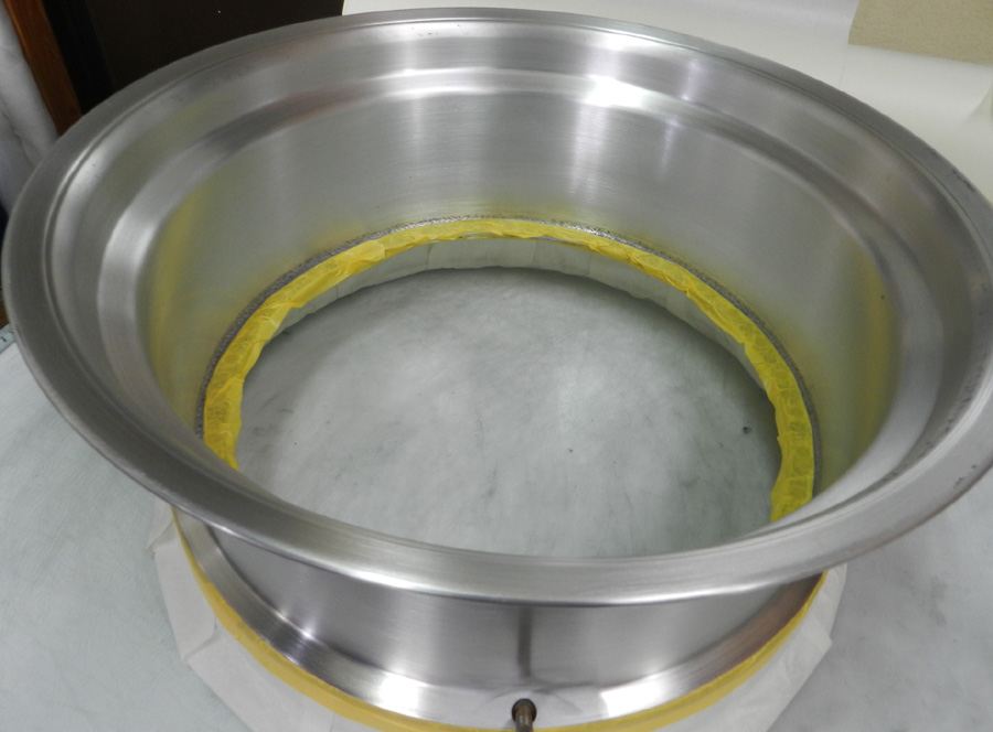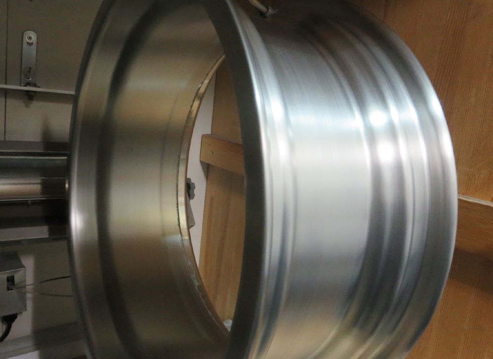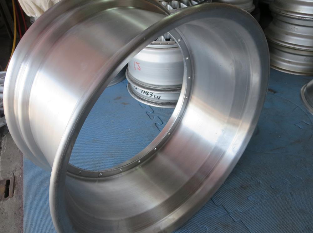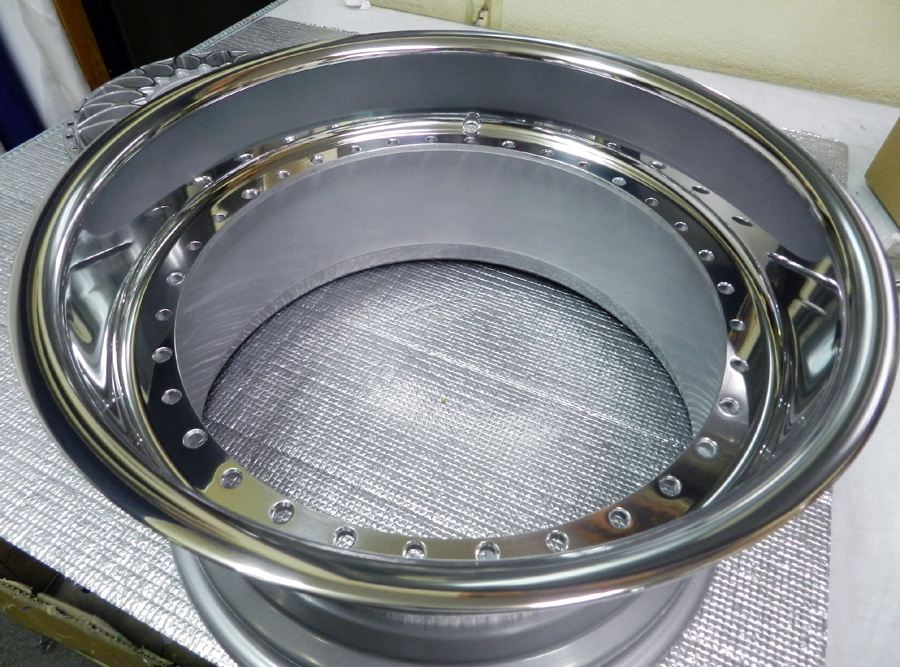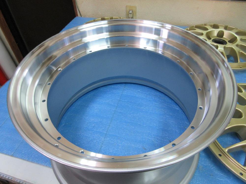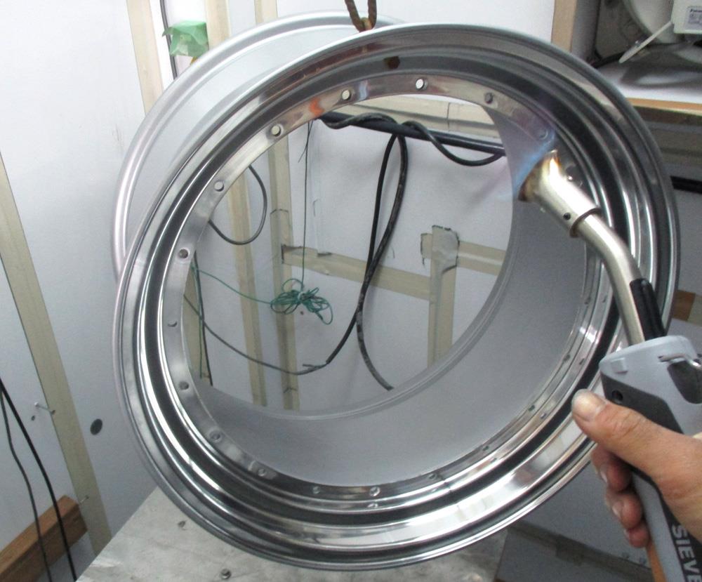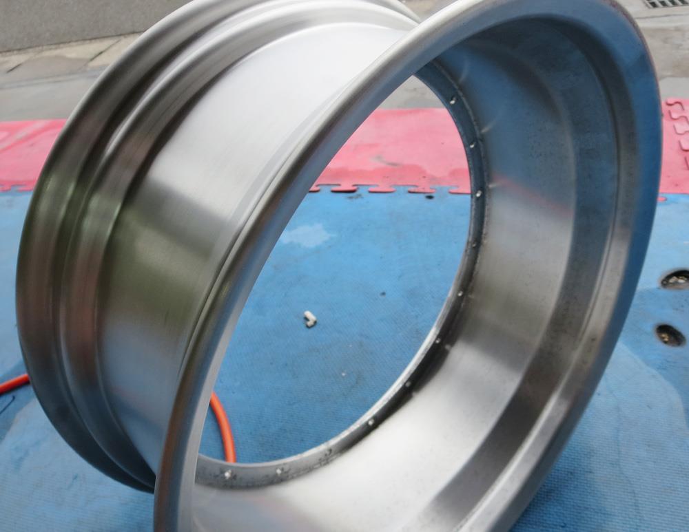 パウダーシルバー肌残しからのダイヤモンドカットでは無くリムフランジ部もよりオリジナルシルバーカラーに近ずけるためにリムフランジ部足付けサイディングします。