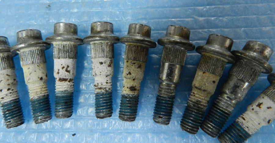 このホイールのピアスボルトは「スプラインボルト」と言って縦に溝が掘ってある特殊なボルトです。外すのは容易ですがハメる時はプレスして押し込むためボルト頭が潰れる事が有ります。また溝が錆びているとなかなか上手に入ってくれませんのでこの手のボルトは基本的に再利用が難しいです。