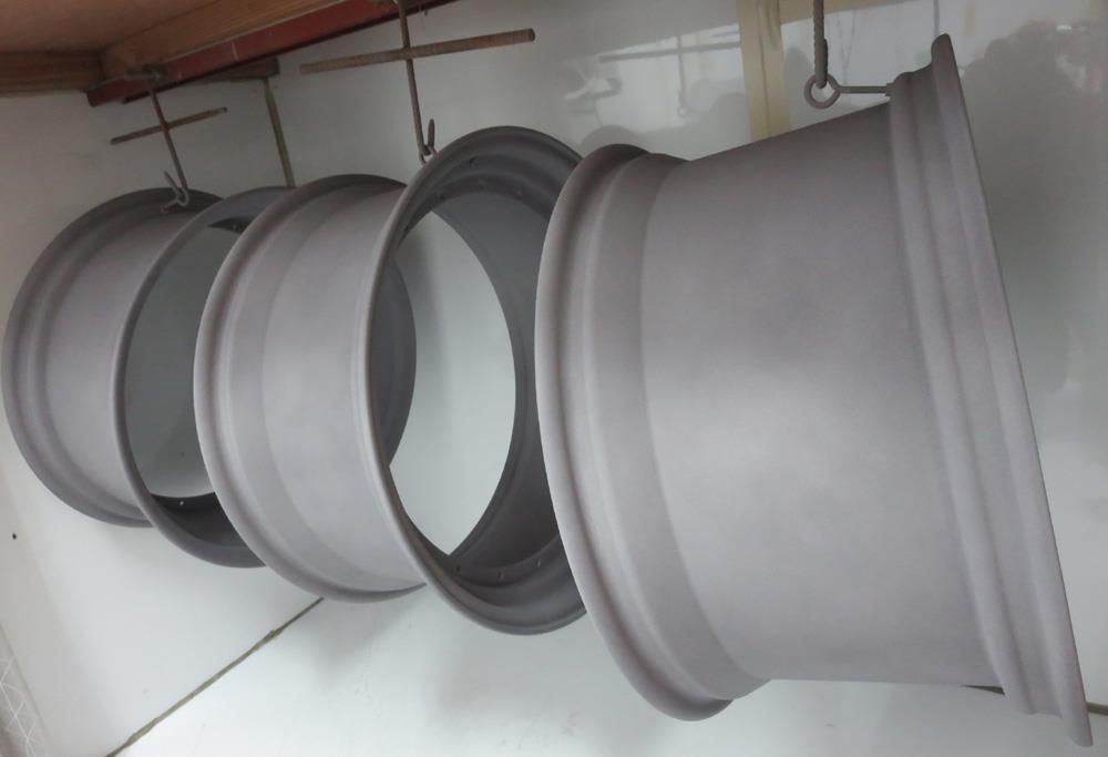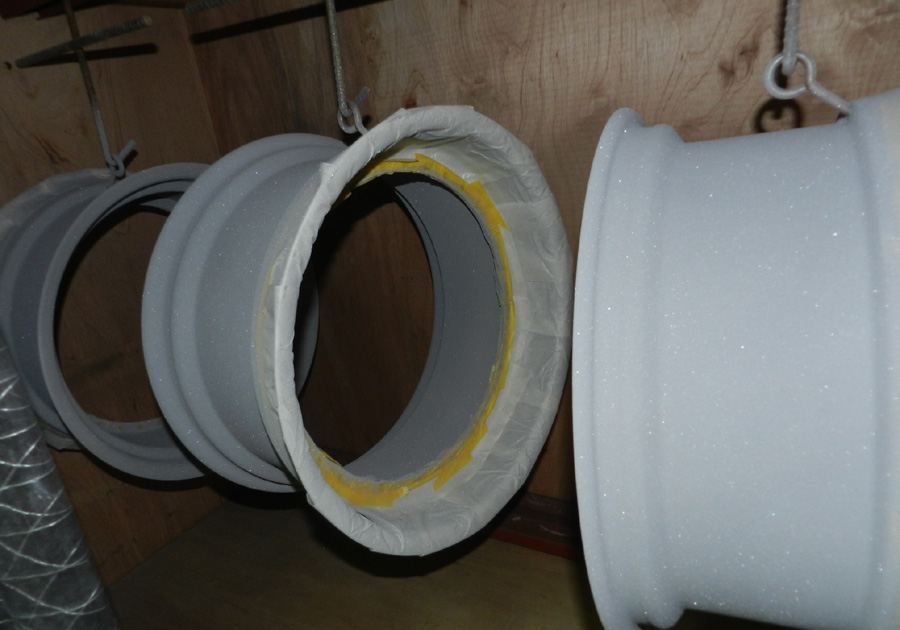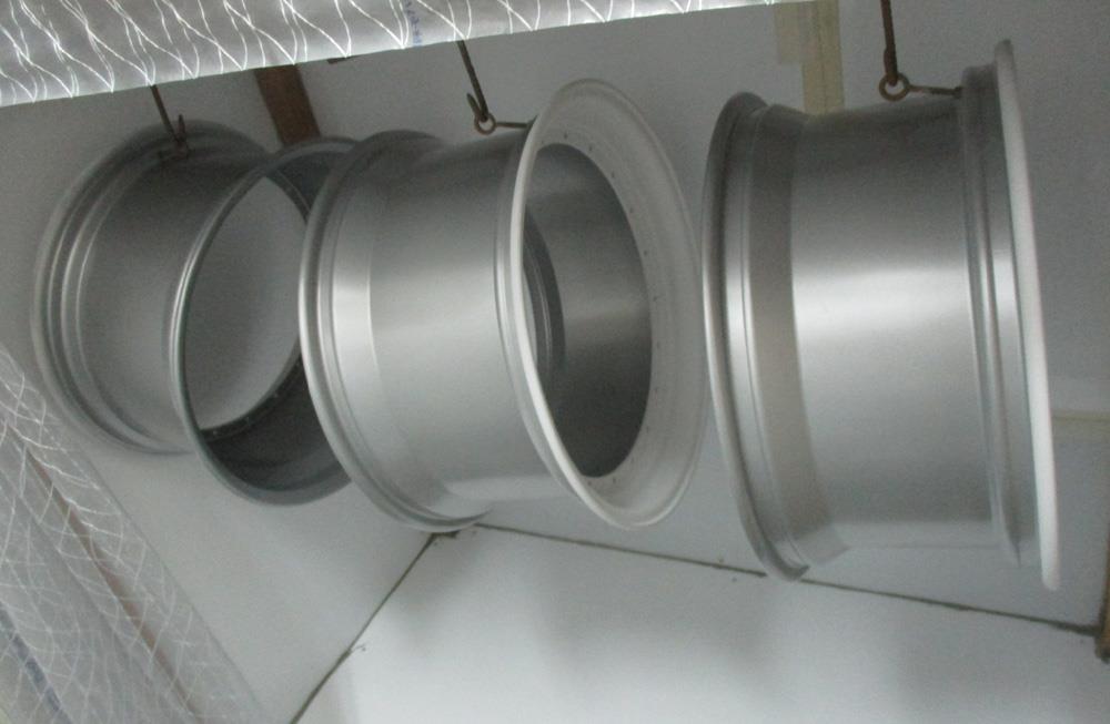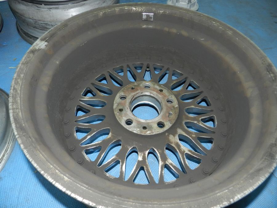 インナーリムの腐食を研磨削除してパウダーコートの下処理します。