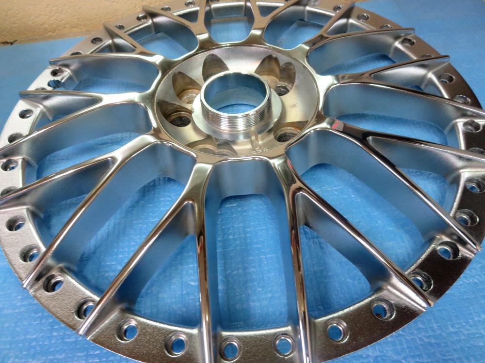 ディスクがクロームでリムがBBFバフ鏡面研磨では光沢、質感のバランスが悪くなるかもしれませんが、元々ディスクはポリッシュのダイヤモンドカットですので、かえってリムがクロームよりのBBFバフ鏡面研磨の方が違和も感無くリムとディスクのバランスが取れているように思います。