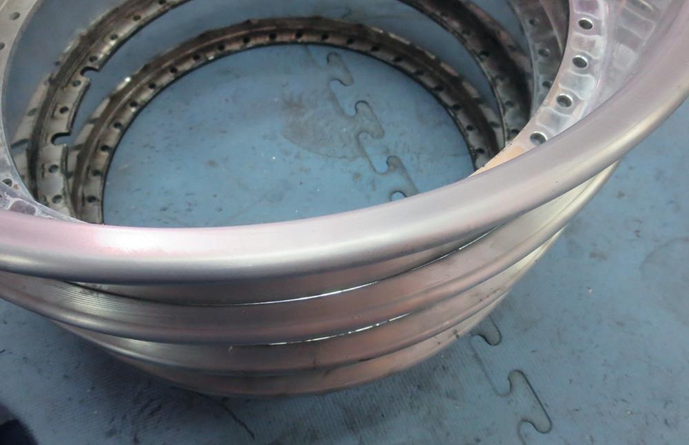 6・リム全面バフ磨き(ディスクに干渉しない箇所までの磨きなら可能ですが磨き筋境目が出ます。)