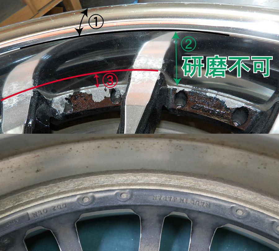 曲り、ガリ傷、欠け、割れは治せても他店修復歴リムや薄くなったリムの肉厚復元は出来ません。