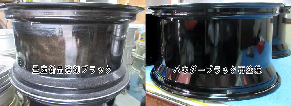 ハヤシレーシング13インチ曲り、ガリ傷、欠け修理パウダーグロスブラック&バレル研摩パウダーアクリルクリアーフルパウダーコート