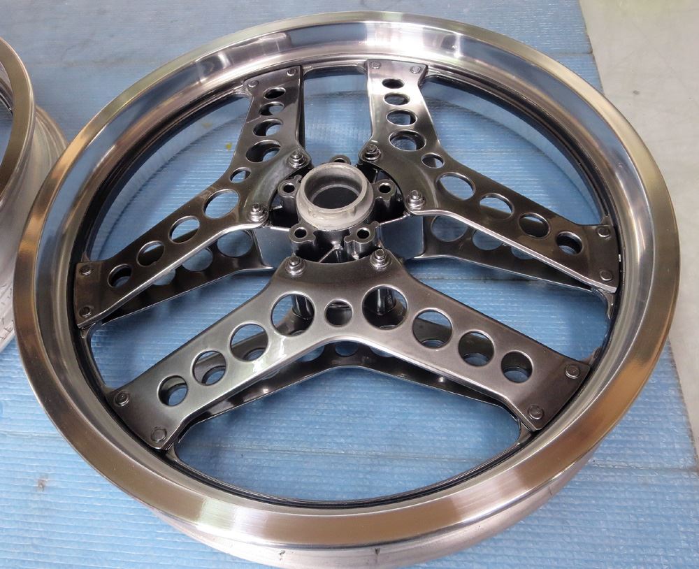 CBX400F/3Psリベット止めコムスターホイール分解ポリッシュ&パウダーブラック塗装フルパウダーコート