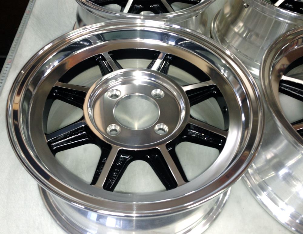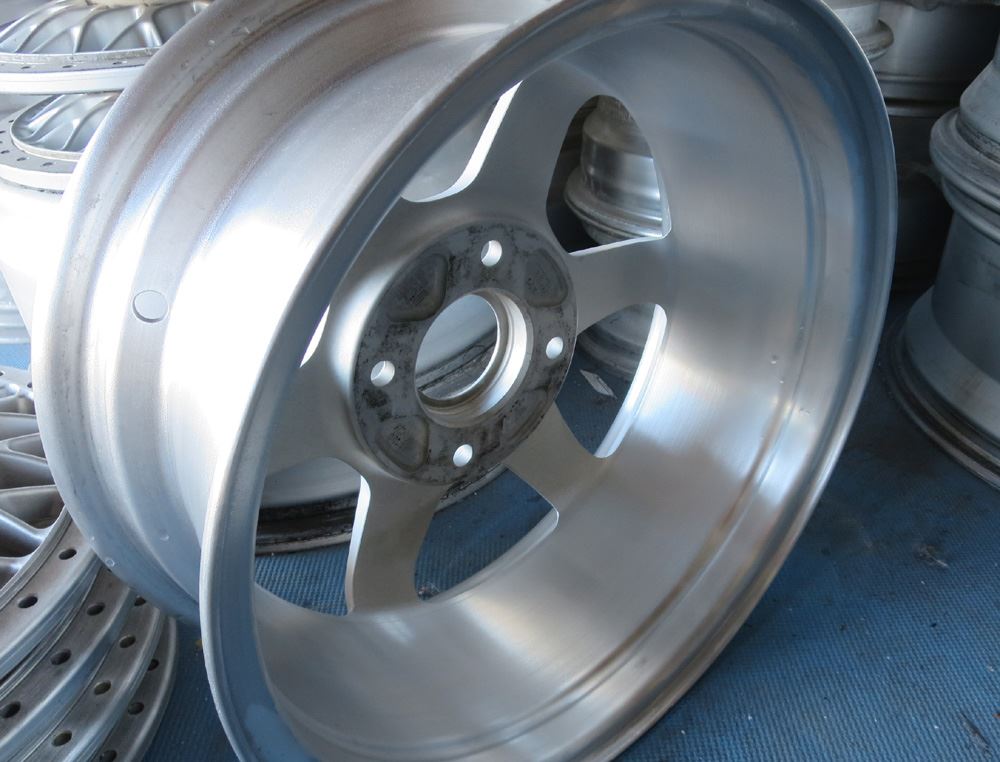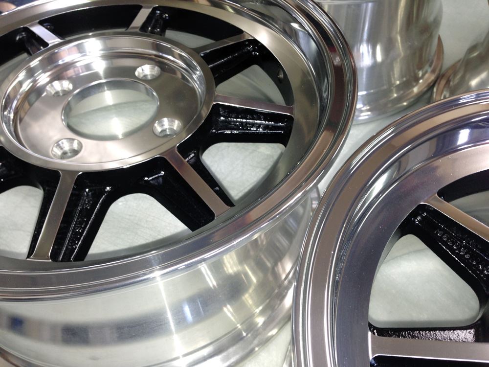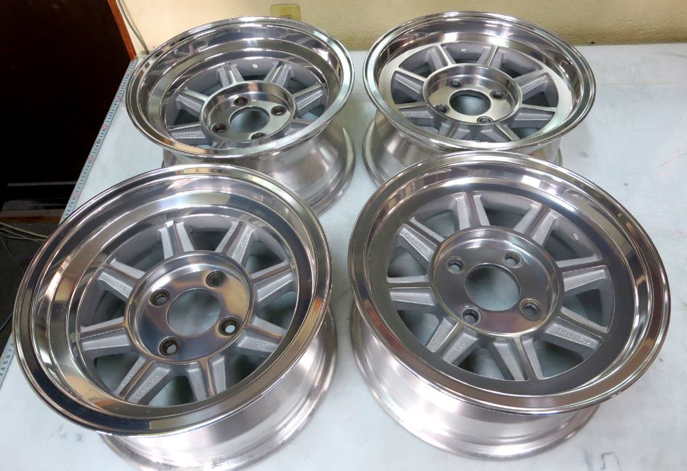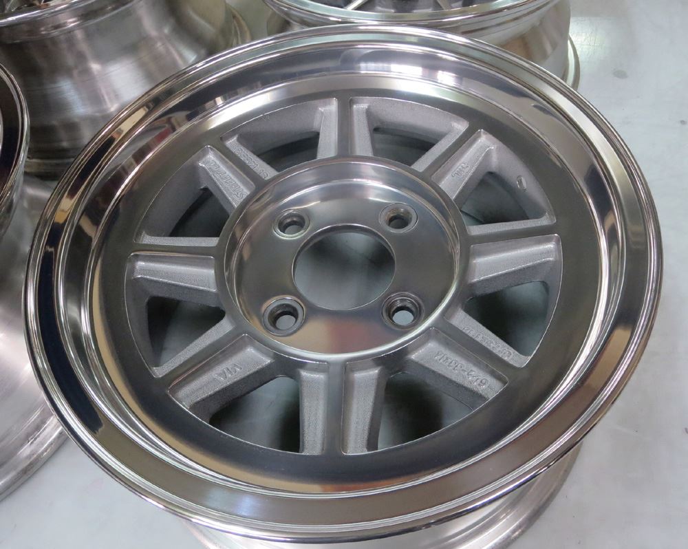 当時モノも現行品も同じ鋳造(CAST)ホイールで当時モノはノークリアーで現行品はオンクリアーして有ります。デザイン変わらず見た目は同じでも技術の進歩で昔と今では造りが違います。また年式により腐食劣化の差も出て来ますのでポリッシュ仕上げは腐食の有無で仕上がりに大きく影響されます。