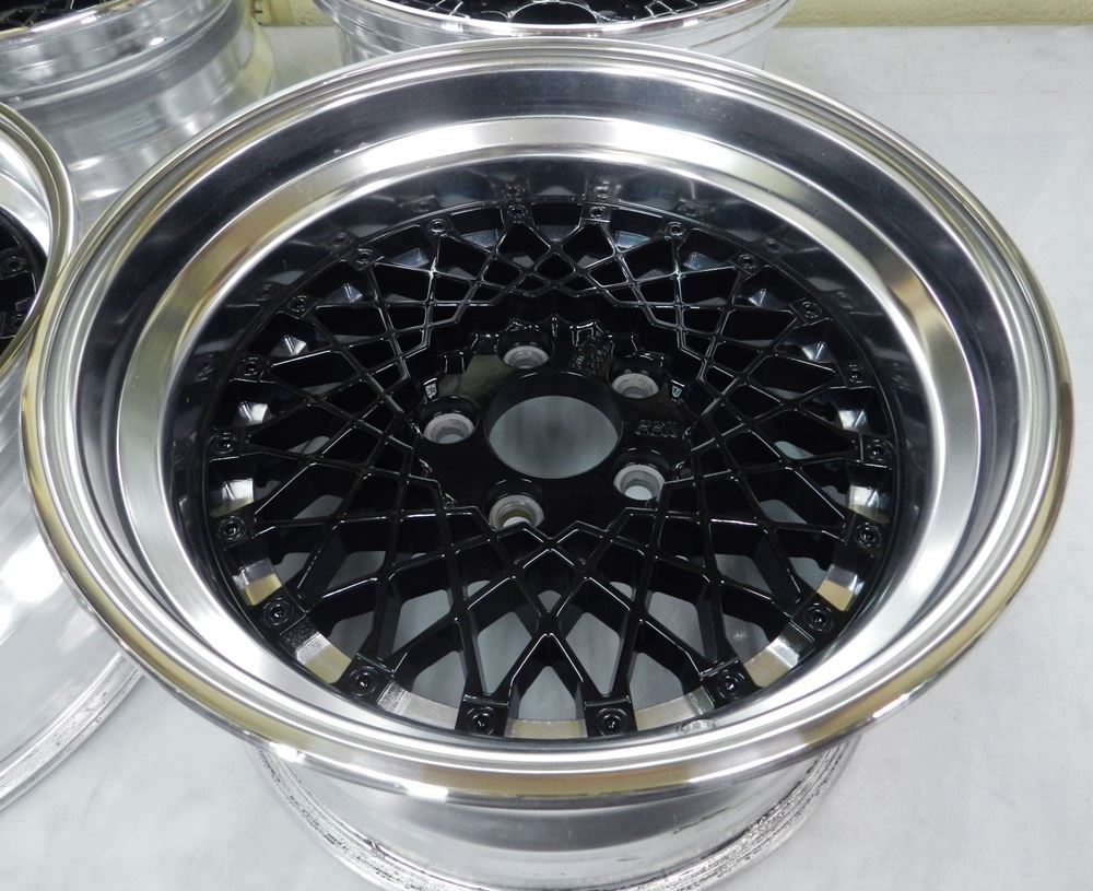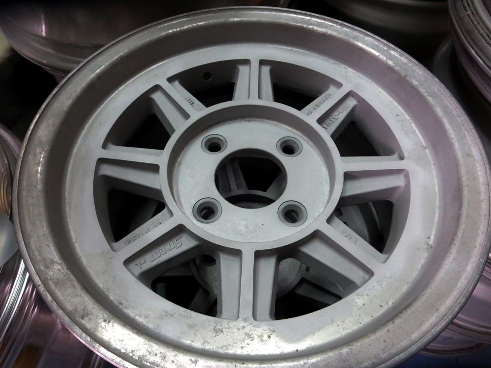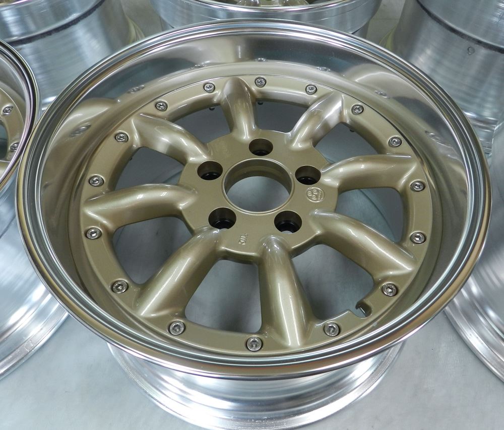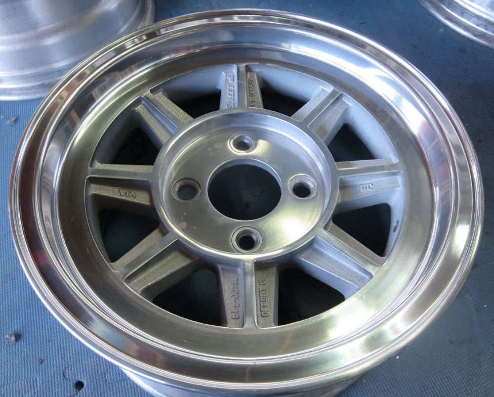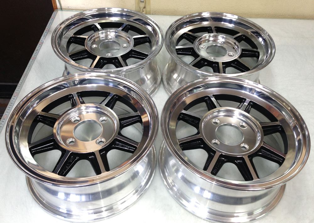 当時モノも現行品も同じ鋳造(CAST)ホイールで当時モノはノークリアーで現行品はオンクリアーして有ります。デザイン変わらず見た目は同じでも技術の進歩で昔と今では造りが違います。また年式により腐食劣化の差も出て来ますのでポリッシュ仕上げは腐食の有無で仕上がりに大きく影響されます。