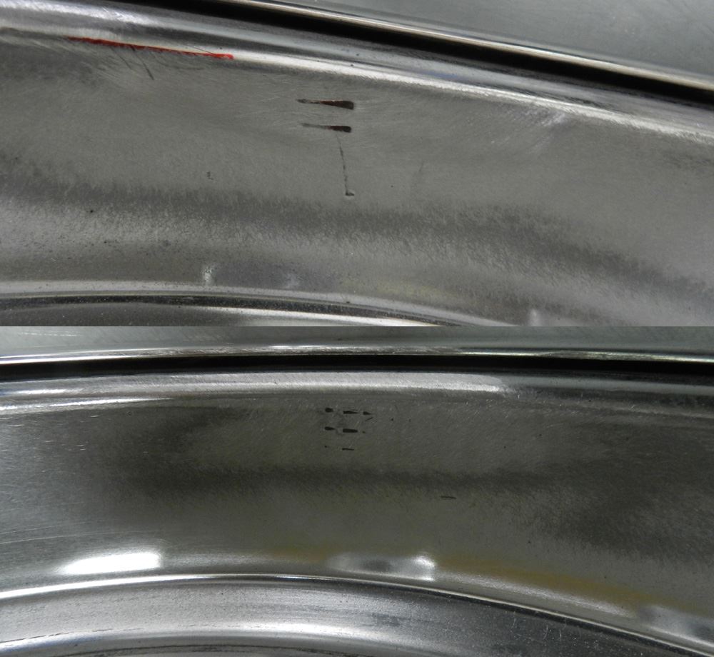 アウトリム磨きは通常ディスクとの境目の垂直面からの研磨(縦横2面)ですがお客様のリクエストで天面部の1面のみのバフポリッシュです。
