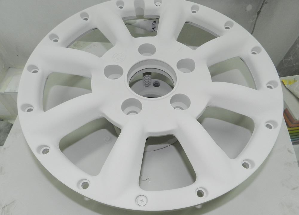 バレル研摩に一部カラーを入れる場合は先にパウダーカラーを済ませてからバレル研摩となります。他のホイールも同じ手順ですので参考にしてください。