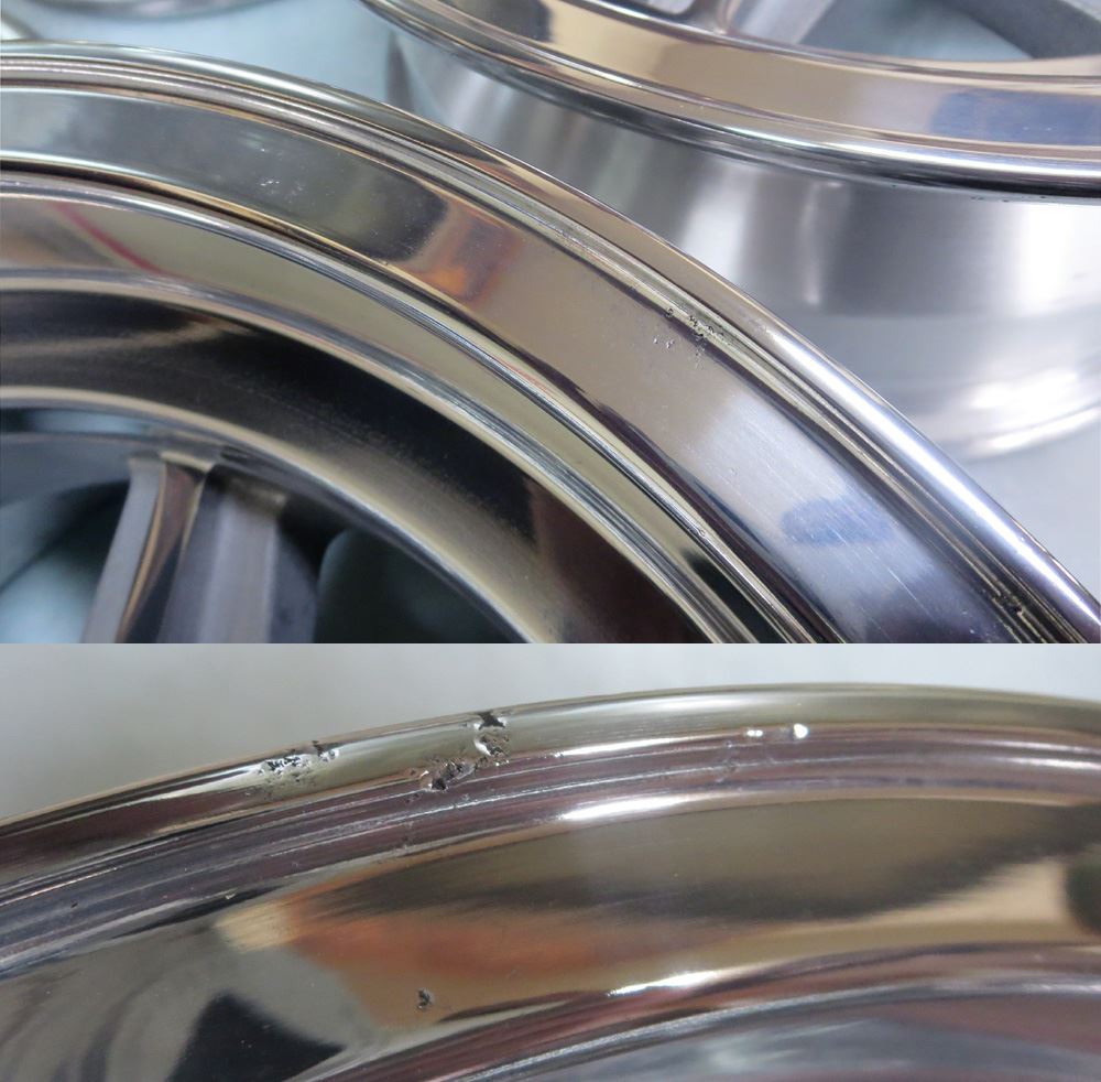 ※こうなればポリッシュ仕上げは基よりパウダーコートもパウダークリアーも湧きが出るため不可となりますのでポリッシュ仕上げのホイールは腐食が進行する前、腐る前に早めの処置が一番大切です。