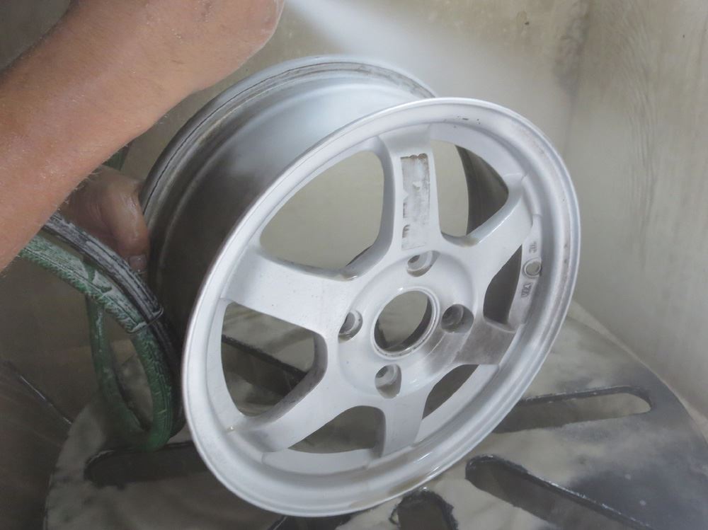 2Psリム本体はパウダーコートしますので剥離から研摩します。
