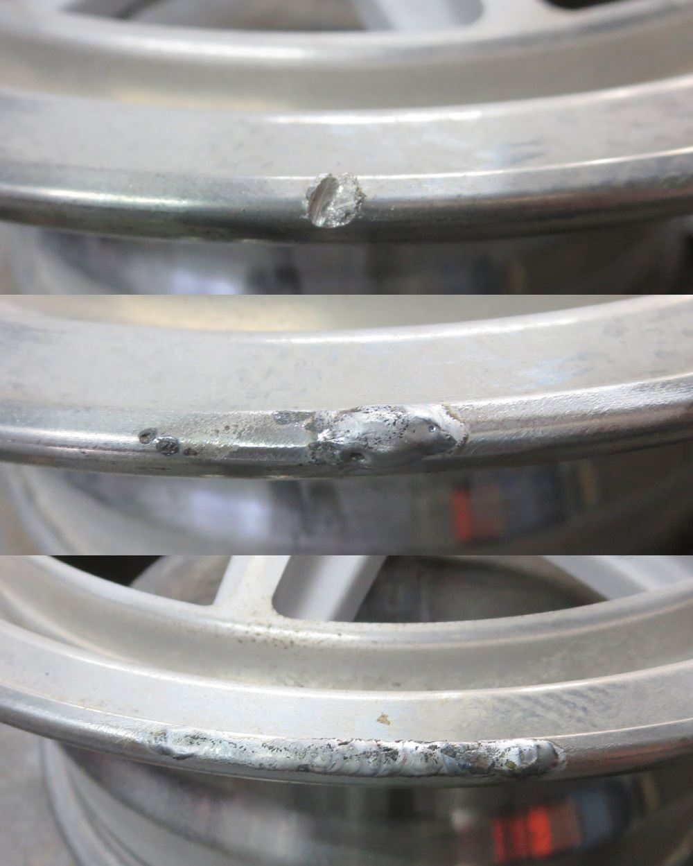 ※肉盛研磨形成を要す修理で溶接痕を気にされない方はアルマイトもお受けしますが、溶接痕が気になる方はBBFバフポリッシュ仕上げになります。