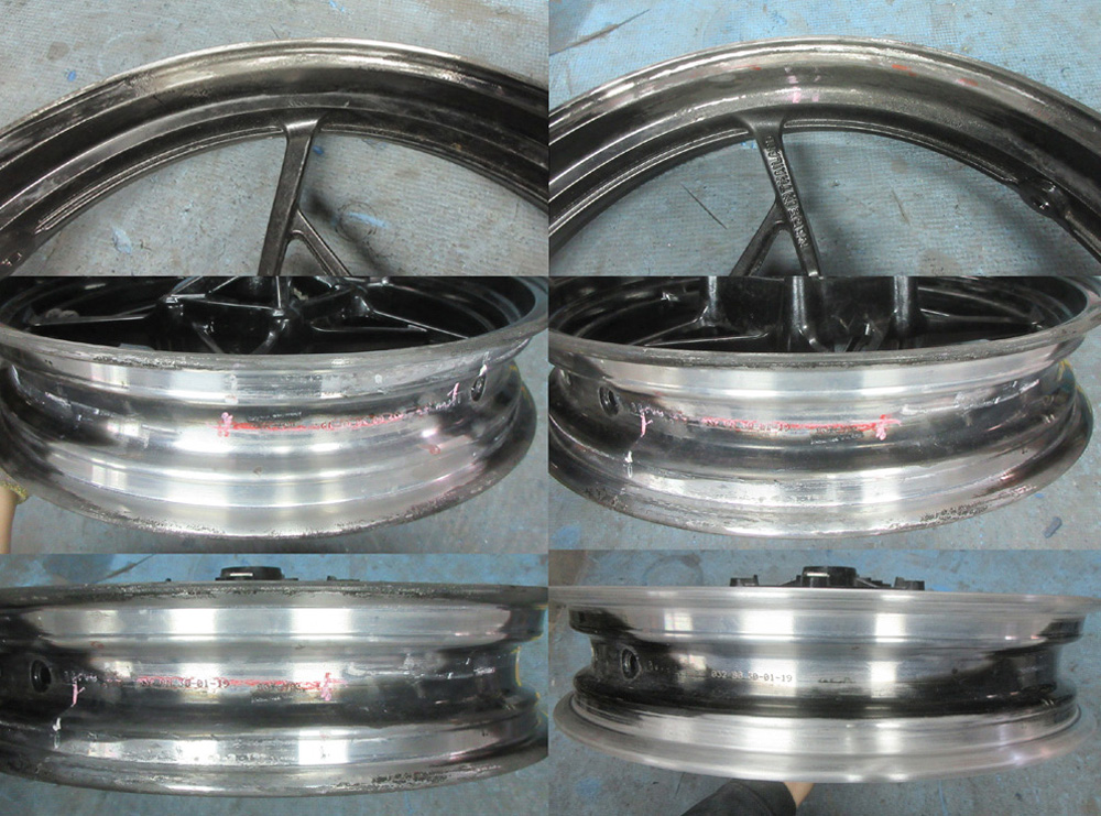 バイク二輪アルミホイール曲りガリ傷修理研磨形成納品塗装無しx4件