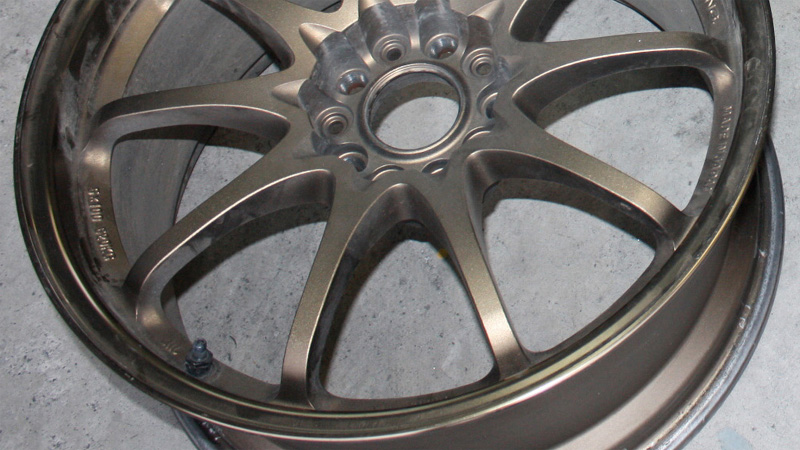 1)擦り傷、シミ、クスミなどリム研磨修正で取れるものはアルマイトの再メッキが可能となります。