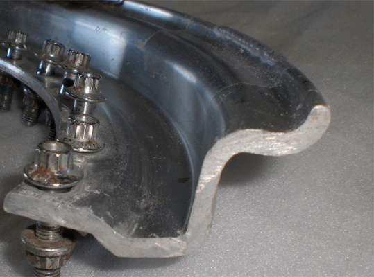 外観は平面なため表面上は削り込み後も解りにくく、さらに折り込んである空洞部は、削り込みにより、どれほど肉厚が確保されているのか外観では判断できませんので、いつ割れるのか?1枚リムよりさらに不安と危険が想像できます。