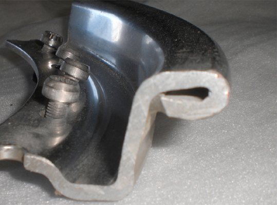 前回削り込み修正により肉厚が薄くなり横割れが起きています。※これは条件付きで割れ修正いたしました。ピアスボルトはついでに磨いてあります。