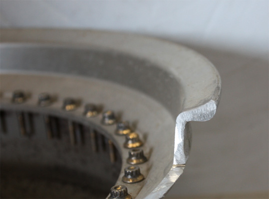 フランジが立っているのでミミの厚みで削り込みが安易に判断できます。