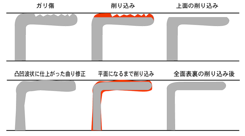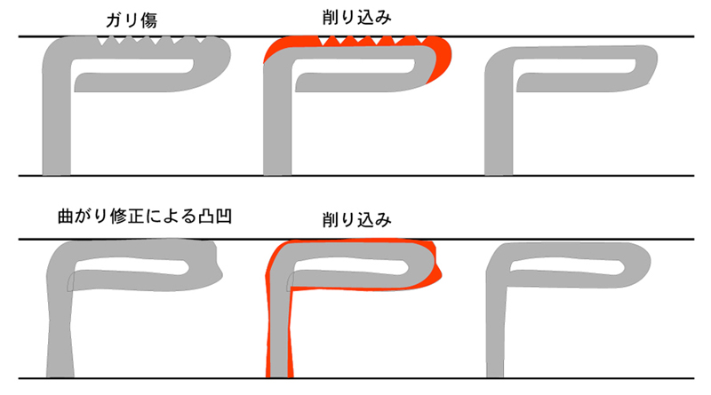 ※削り込み修正の手直しは全面肉厚の復元が不可能なため、手直し修正不可となります。