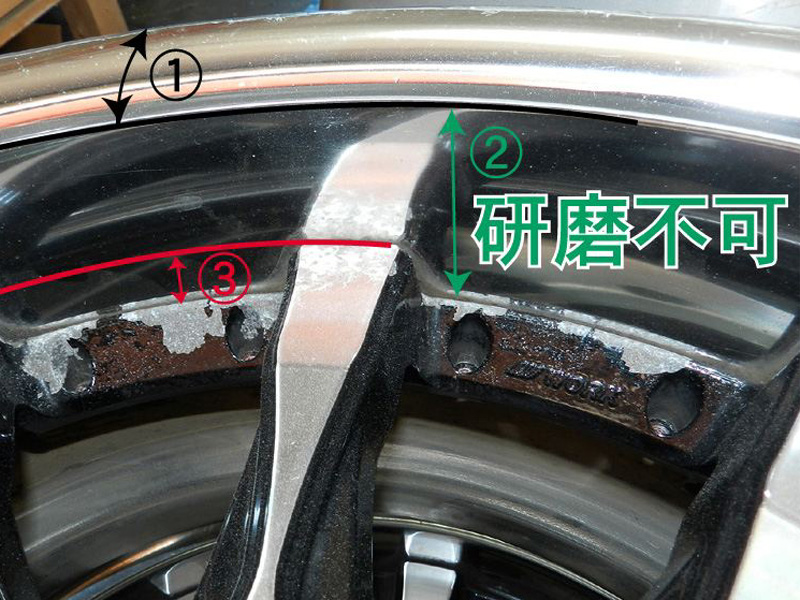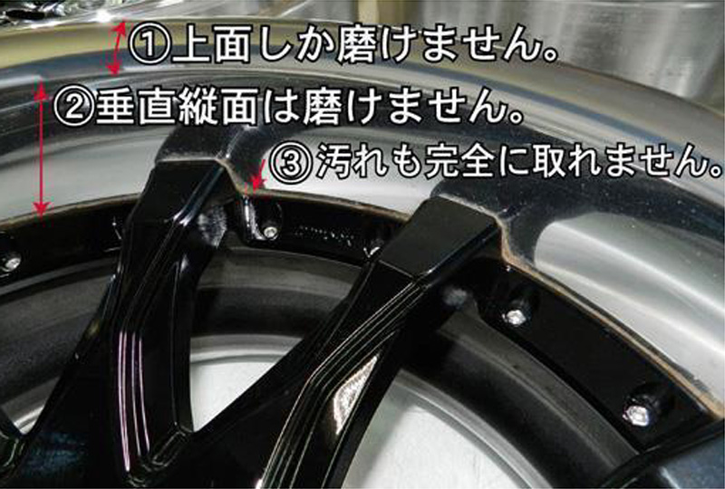 2・リム全面研磨出来る構造でもはディスク塗装を損傷しない程度の届く限界値までのリム研摩になります。