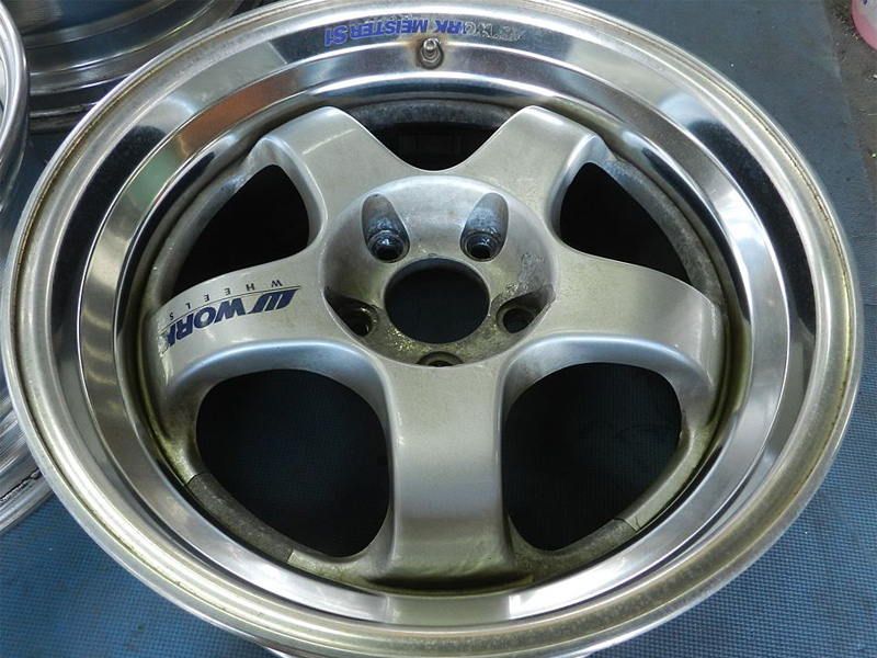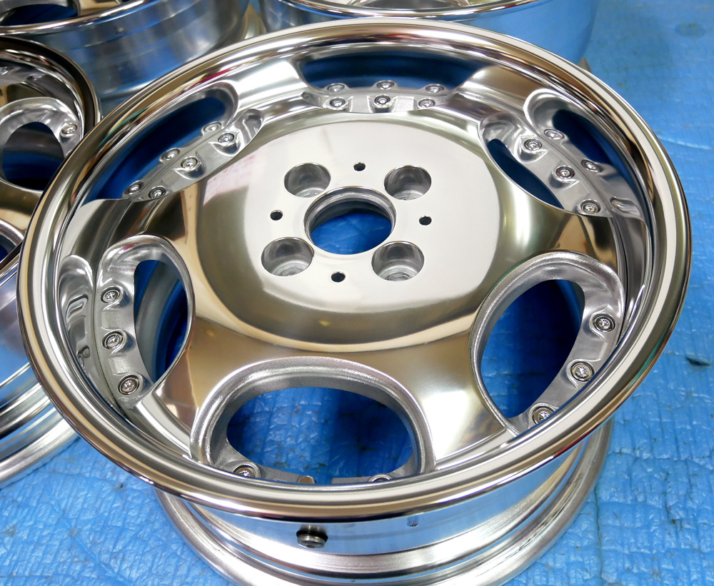 2Psハメ殺しホイールには「ダミーボルト無し」と「ダミーボルト付き」が有りますがリム全面研磨など「ダミーボルト付き」は構造により修理から磨き&塗装の限界値が有るさらに厄介なホイールです。