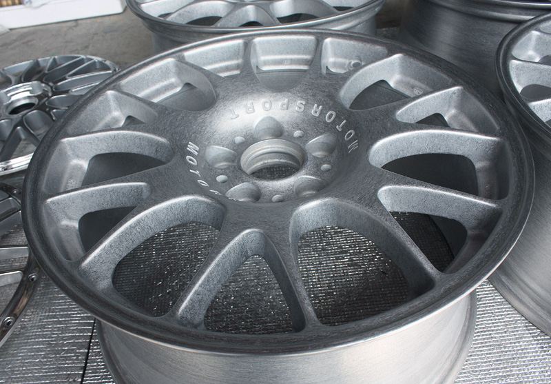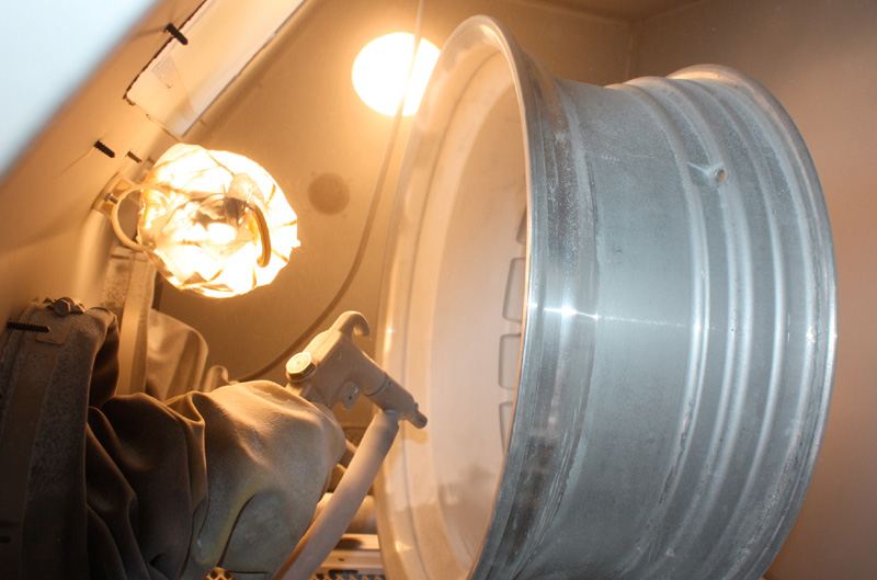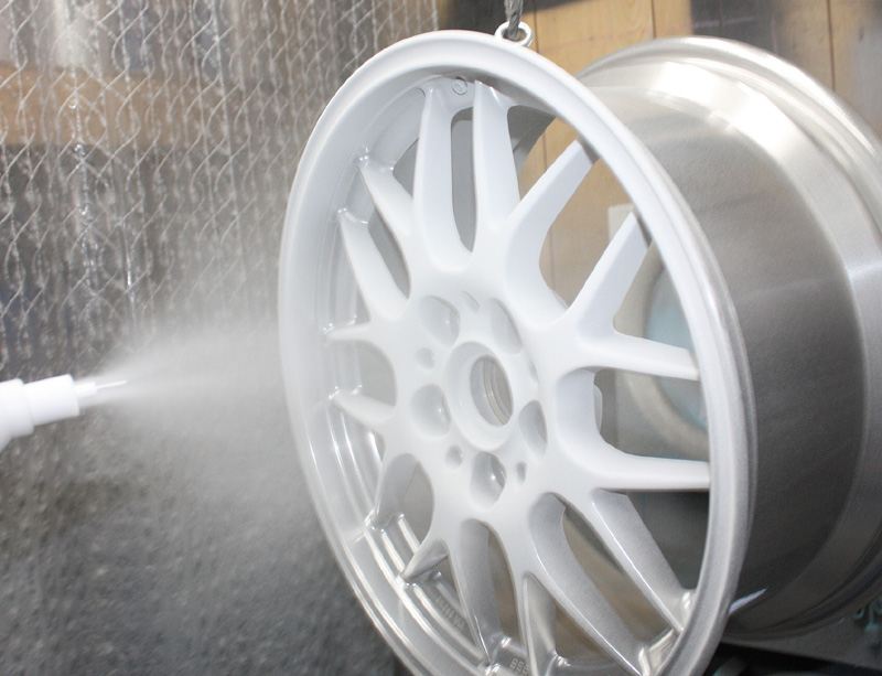 ホイールを丸ごと磨くスーパーミラーポリッシュ用のバレル研磨機を設置していますので、それをパウダーコートの下処理に使えないかと思い、当店独自でパウダー塗装用下処理に脱脂剤を添付して最終荒研磨にバレル研磨も追加採用しています。塗装は下処理が命です。