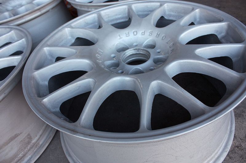 カラー塗装ならあまり問題ありませんが、ポリッシュ部へバランスウェイトを直に付けるとウェイト鉛にアルミが犯されていまい、その箇所へ黒墨状の腐食が現われます。