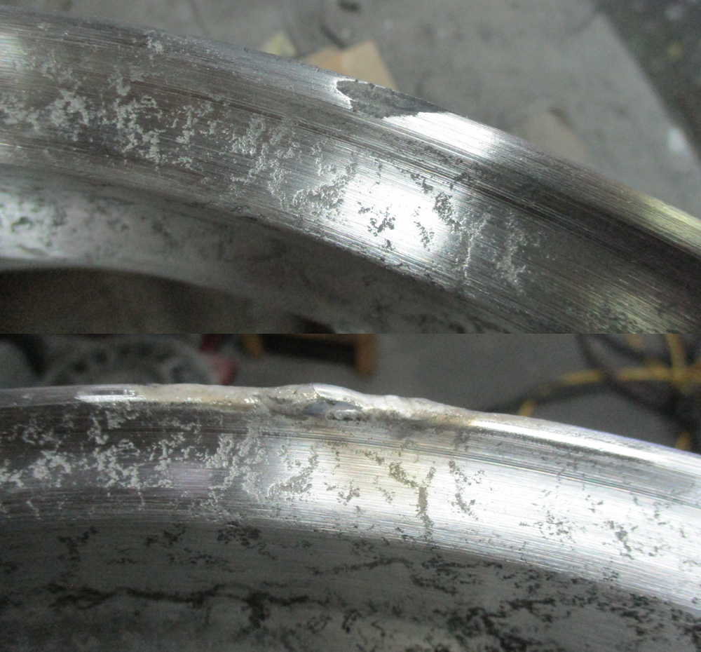 「鋳造・鍛造・合金プレスリム」の大きな「曲り、欠け、割れ」修理