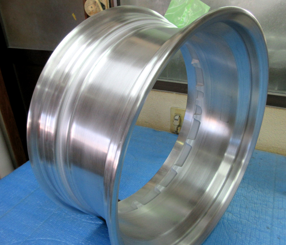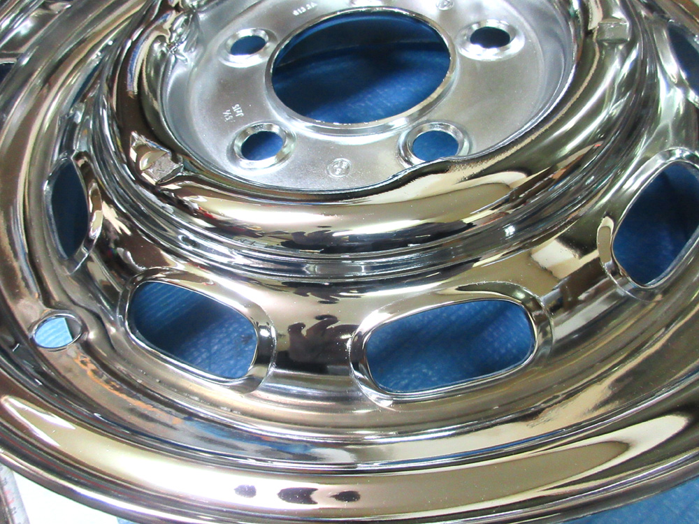 鉄ホイールのクロームメッキは基本となるバフ磨きからバレル研磨は当社で下処理研磨して後はクロームメッキ工場へ外注依頼となります。化研光輝アルマイトも同じ工程でクロームメッキも光輝アルマイトもメッキ前のバフ磨き、バレル研磨、腐食の有無でメッキの仕上がりが大きく左右されます。